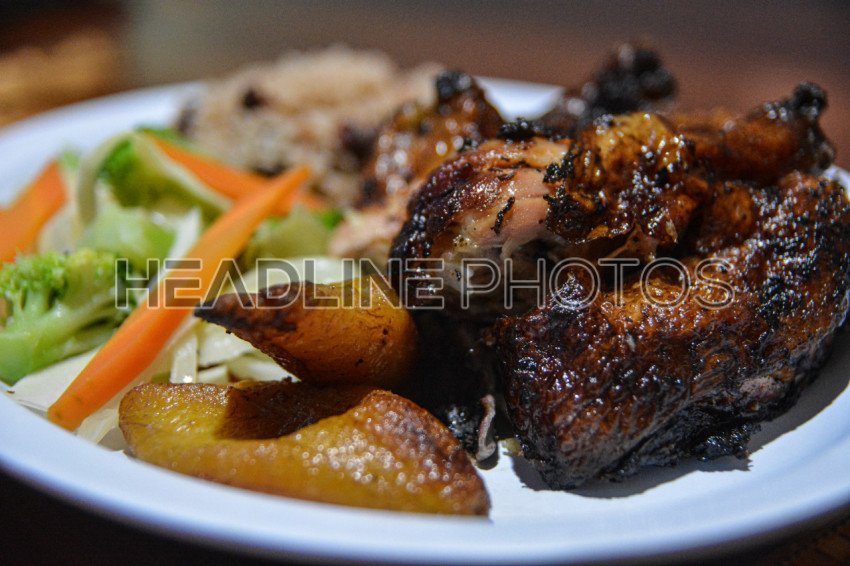 caribbean food dinner eat eating food hungry jerk chicken lunch plate plate of food sweet plantain yummySimilar Photos