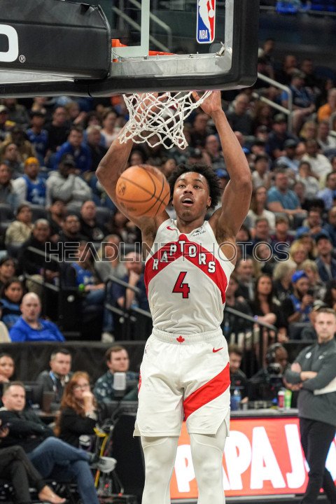Orlando, Florida, USA, November 21, 2023, Toronto Raptors Guard Scottie Barnes #4 makes a dunk at the Amway Center. (Photo Credit: Marty Jean-Louis)