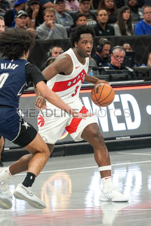 Orlando, Florida, USA, November 21, 2023, Toronto Raptors forward OG Anunoby #3 pushes forward at the Amway Center. (Photo Credit: Marty Jean-Louis)