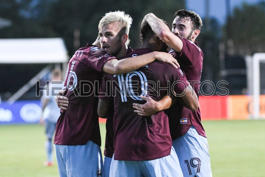 Colorado Rapids players celebrate goal during the MLS is Back Tournament at ESPN Wild World of Sports in Orlando Florida USA on Friday July 17, 2020. Photo Credit: Marty Jean-Louis