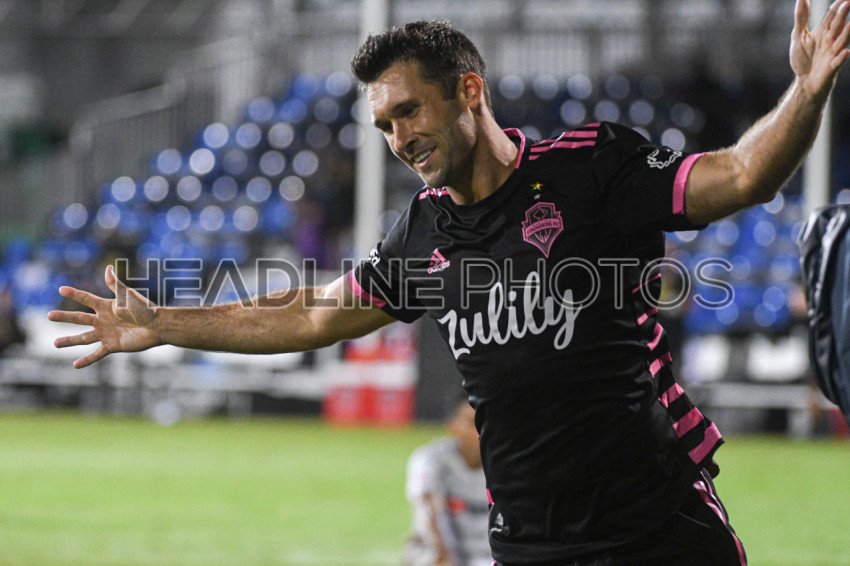 Seattle Sounders FC forward Bruin, Will #17 celebrate after scoring during the MLS is Back Tournament at ESPN Wild World of Sports in Orlando Florida on Monday July 27, 2020. Photo Credit: Marty Jean-Louis