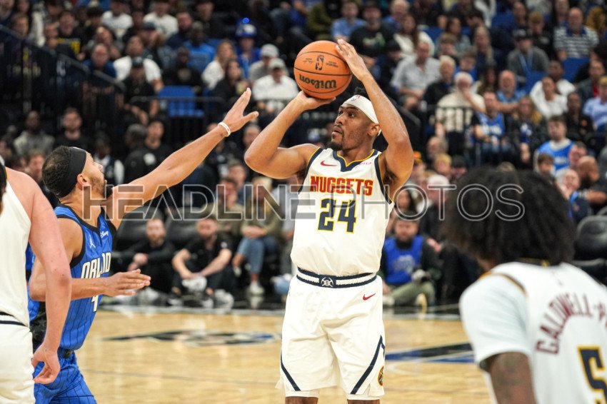 Orlando, Florida, USA, November 22, 2023, Denver Nuggets forward Jalen Pickett #24 shoots a three at the Amway Center. (Photo Credit: Marty Jean-Louis)