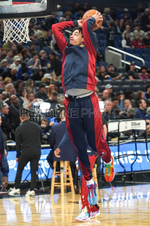 Orlando, Florida, USA, November 22, 2023, Denver Nuggets forward Zeke Nnaji #22 warming up with a dunk at the Amway Center. (Photo Credit: Marty Jean-Louis)