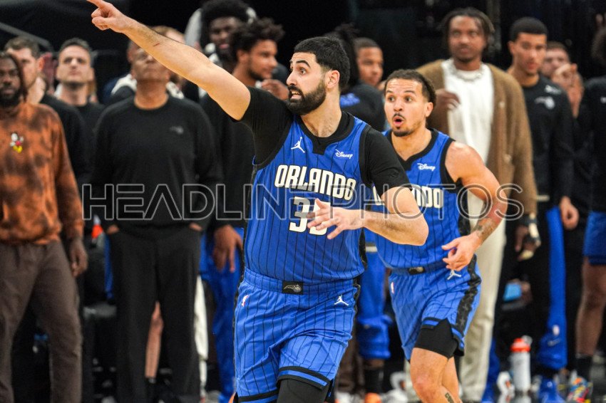 Orlando, Florida, USA, November 22, 2023, Orlando Magic center Goga Bitadze #35 celebrate after a succesful shot at the Amway Center. (Photo Credit: Marty Jean-Louis)