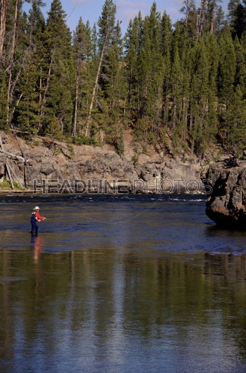 A fly fisherman gets ready to wade into salt water at sunrise and fly fish for coastal cutthroat trout and salmon at a beach