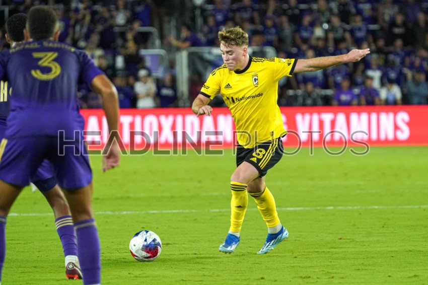 Orlando, Florida, USA, November 25, 2023, Columbus Crew midfielder Aidan Morris #8 attempt to score in the first half at Exploria Stadium. (Photo Credit: Marty Jean-Louis)