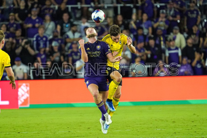 Orlando, Florida, USA, November 25, 2023, Orlando City SC forward Duncan McGuire #13 wins the header but is fouled at Exploria Stadium. (Photo Credit: Marty Jean-Louis)