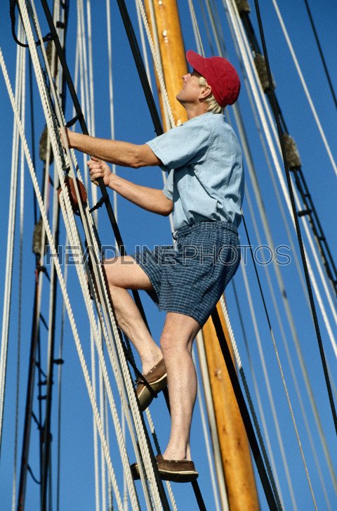 adults only brown colour image day grey colour leisure activity lifestyles mast sailing moving up one man only one person outdoors passenger craft photography red rigging nautical rope sailSimilar Photos
