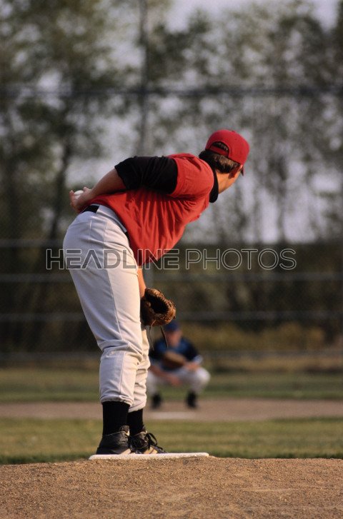 Youth league baseball pitcher
