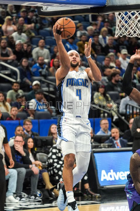 Orlando, Florida, USA, November 26, 2023, Orlando Magic guard Jalen Suggs #4 jumps to make a basket in the first half at the Amway Center. (Photo Credit: Marty Jean-Louis)