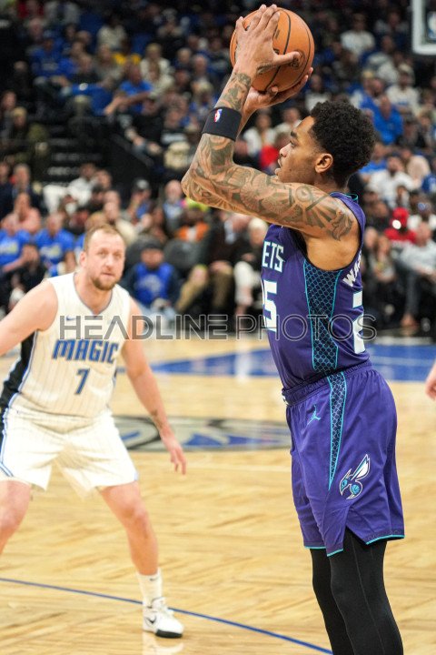 Orlando, Florida, USA, November 26, 2023, Charlotte Hornets forward PJ Washington #25 shoots a three in the second half at the Amway Center. (Photo Credit: Marty Jean-Louis)