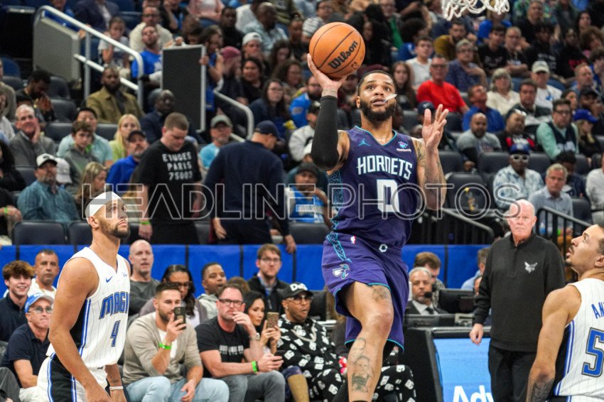 Orlando, Florida, USA, November 26, 2023, Charlotte Hornets player Miles Bridges #0 attempt to score at the Amway Center. (Photo Credit: Marty Jean-Louis)