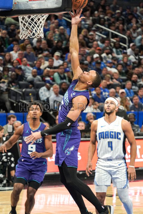 Orlando, Florida, USA, November 26, 2023, Charlotte Hornets guard Bryce McGowens #7 attempt to score at the Amway Center. (Photo Credit: Marty Jean-Louis)