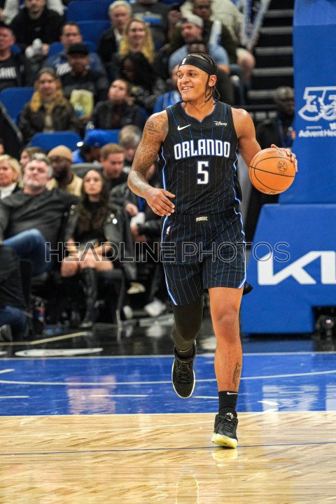 Orlando, Florida, USA, November 29, 2023, Orlando Magic forward Paolo Banchero #5 runs forward during the first half at the Amway Center. (Photo Credit: Marty Jean-Louis)