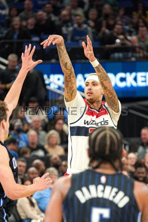 Orlando, Florida, USA, November 29, 2023, Washington Wizards forward Kyle Kuzma #33 shoots a three during the second half at the Amway Center. (Photo Credit: Marty Jean-Louis)