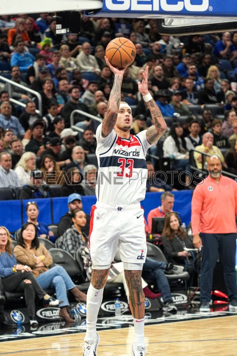 Orlando, Florida, USA, November 29, 2023, Washington Wizards forward Kyle Kuzma #33 attempt to score during the second half at the Amway Center. (Photo Credit: Marty Jean-Louis)