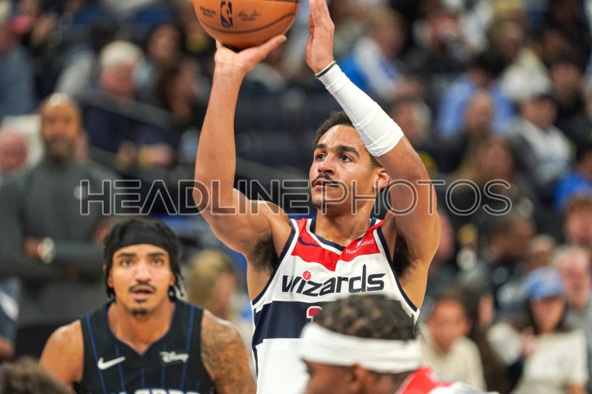 Orlando, Florida, USA, November 29, 2023, Washington Wizards guard Jordan Poole #13 shoots a free throw on the floor in pain during the second half at the Amway Center. (Photo Credit: Marty Jean-Louis)