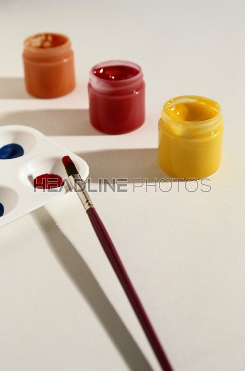 Palette and poster color bottle with paint brush