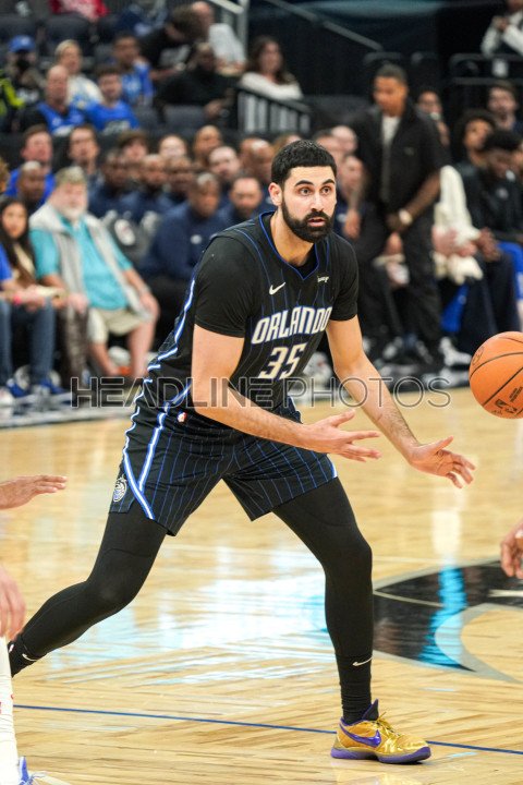 Orlando, Florida, USA, November 29, 2023, Orlando Magic center Goga Bitadze #35 makes a pass in the first quarter at the Amway Center. (Photo Credit: Marty Jean-Louis)
