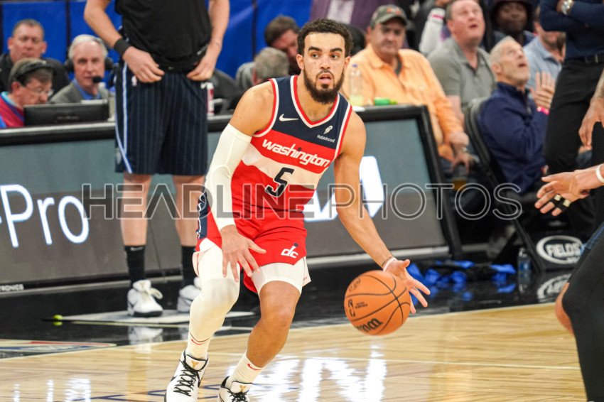 Orlando, Florida, USA, November 29, 2023, Washington Wizards guard Tyus Jones #5 look to make a pass at the Amway Center. (Photo Credit: Marty Jean-Louis)