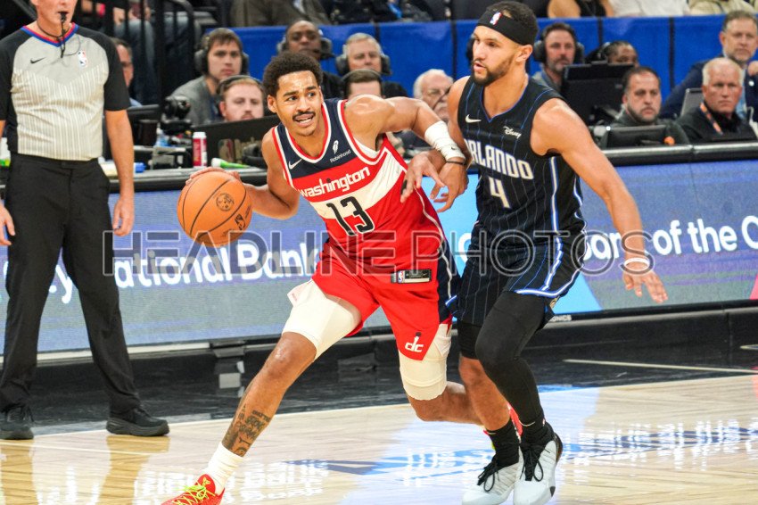 Orlando, Florida, USA, November 29, 2023, Washington Wizards guard Jordan Pool3 #13 atempt to run pass Jalen Suggs #4 at the Amway Center. (Photo Credit: Marty Jean-Louis)
