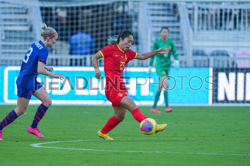 Fort Lauderdale, USA, December 2, 2023, China PR midfielder Tang Jiali #23 controls the ball in a friendly match at DRV PNK Stadium. (Photo Credit: Marty Jean-Louis)