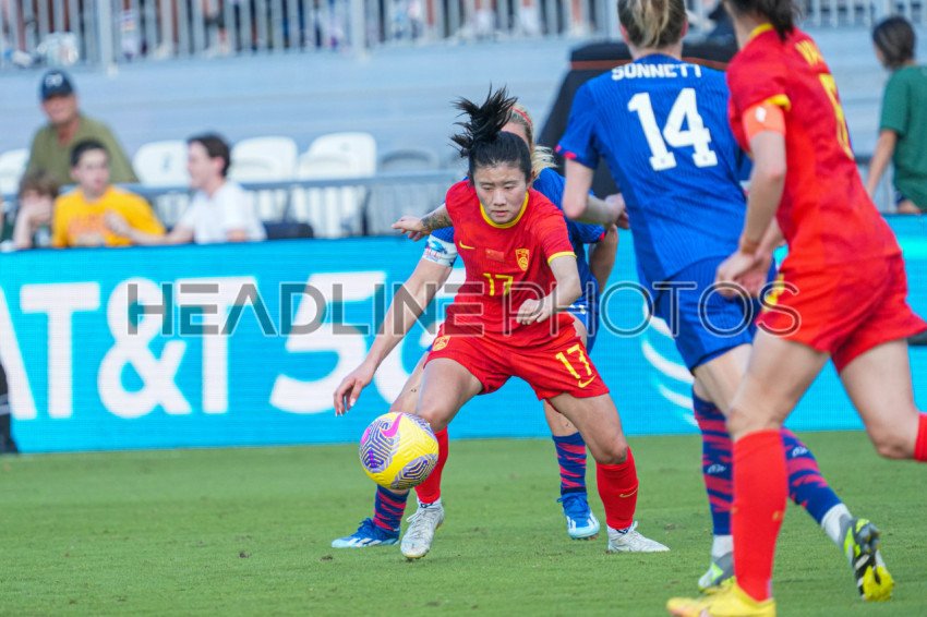 Fort Lauderdale, USA, December 2, 2023, China PR forward Yan Jinjin #17 in a friendly match at DRV PNK Stadium. (Photo Credit: Marty Jean-Louis)