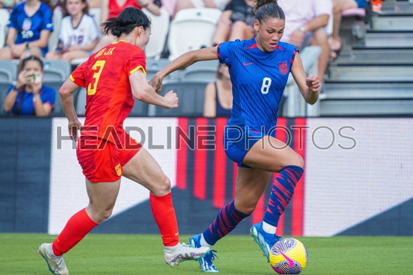 Fort Lauderdale, USA, December 2, 2023, U.S. National Women's Team player Trinity Rodman #8 runs up field in a friendly match at DRV PNK Stadium. (Photo Credit: Marty Jean-Louis)