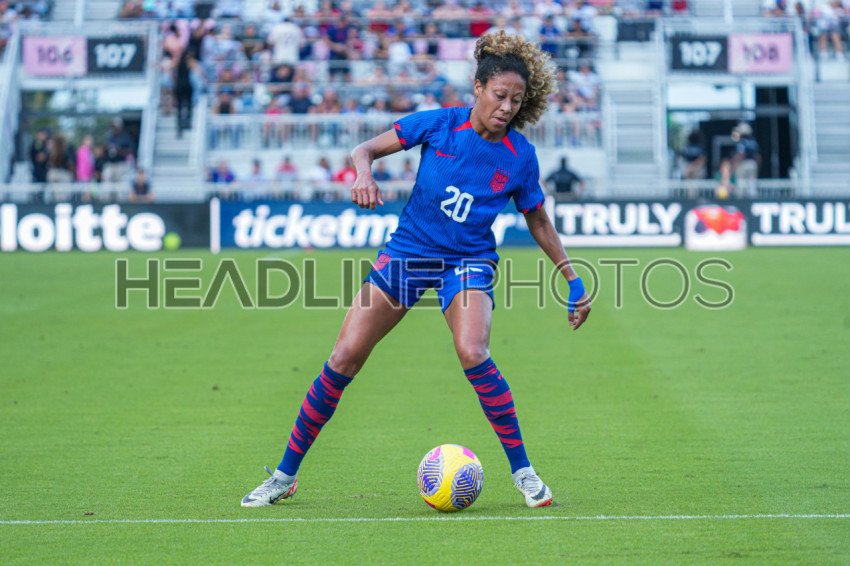 Fort Lauderdale, USA, December 2, 2023, U.S. National Women's Team defender Casey Krueger #20 in a friendly match at DRV PNK Stadium. (Photo Credit: Marty Jean-Louis)