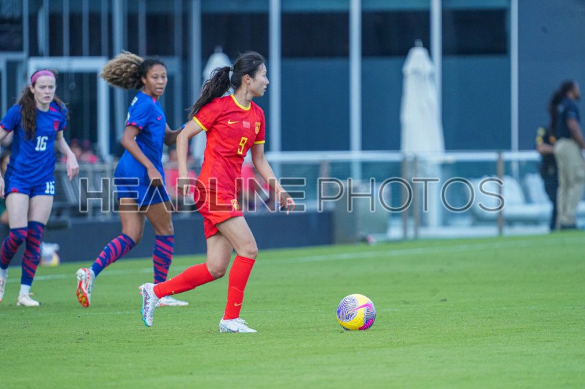 Fort Lauderdale, USA, December 2, 2023, China PR player Shen Mengyu #9 in a friendly match at DRV PNK Stadium. (Photo Credit: Marty Jean-Louis)