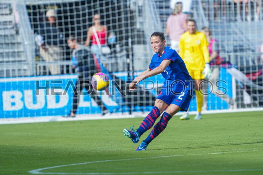 Fort Lauderdale, USA, December 2, 2023, U.S. National Women's Team defender Abby Dahlkemper #2 makes a pass in a friendly match at DRV PNK Stadium. (Photo Credit: Marty Jean-Louis)
