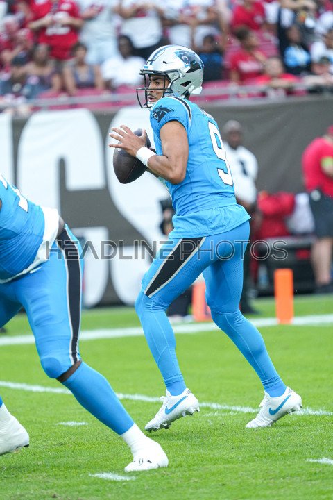 Tampa Bay, Florida, USA, December 3, 2023, Carolina Panthers quarterback Bryce Young #9 look to make a pass at Raymond James Stadium. (Photo Credit: Marty Jean-Louis)
