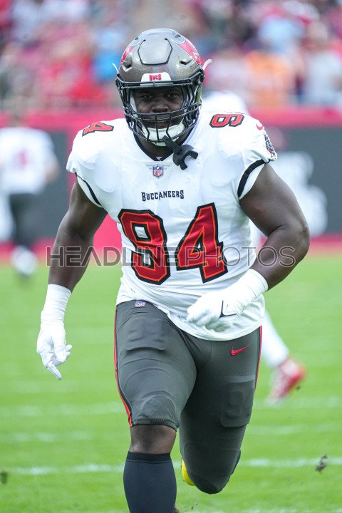 Tampa Bay, Florida, USA, December 3, 2023, Tampa Bay Buccaneers player Calijah Kancey #94 warms up at Raymond James Stadium. (Photo Credit: Marty Jean-Louis)