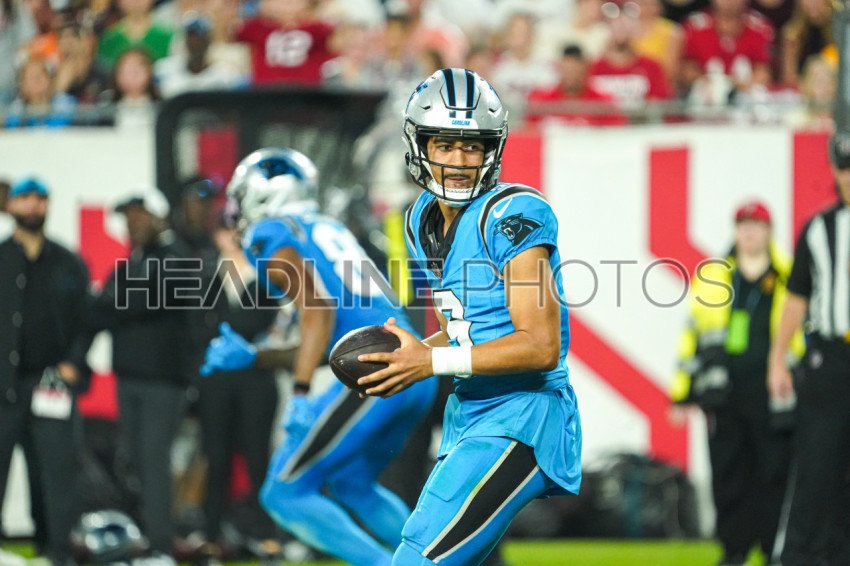 Tampa Bay, Florida, USA, December 3, 2023, Carolina Panthers quarterback Bryce Young #9 look to make a pass during the second half at Raymond James Stadium. (Photo Credit: Marty Jean-Louis)
