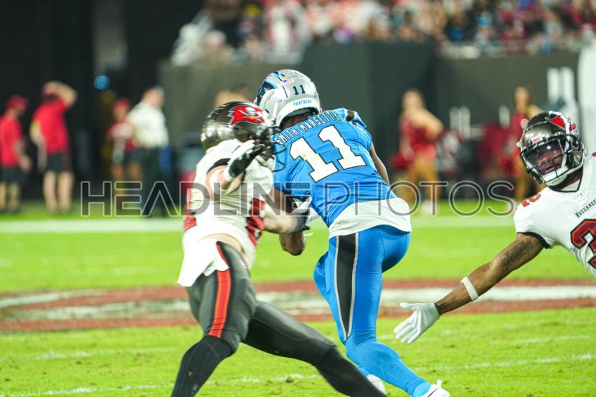 Tampa Bay, Florida, USA, December 3, 2023, Carolina Panthers Ihmir Smith-Marsette #11 runs pass Buccaneers players at Raymond James Stadium. (Photo Credit: Marty Jean-Louis)