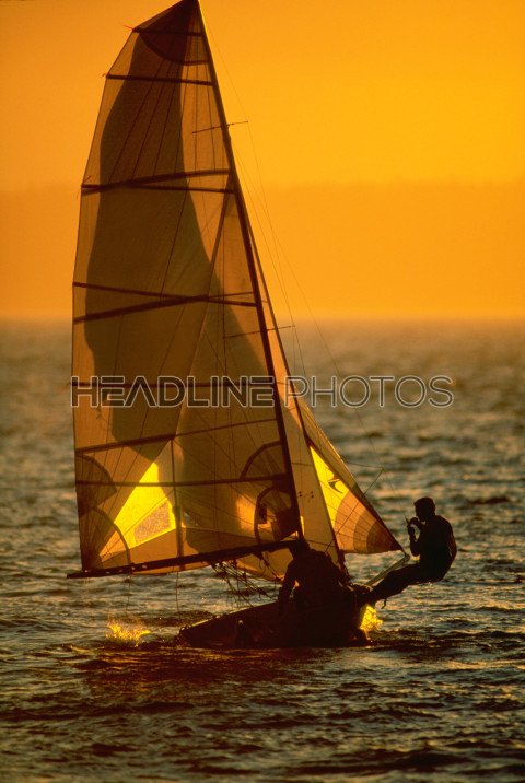 Sailboats at sunset