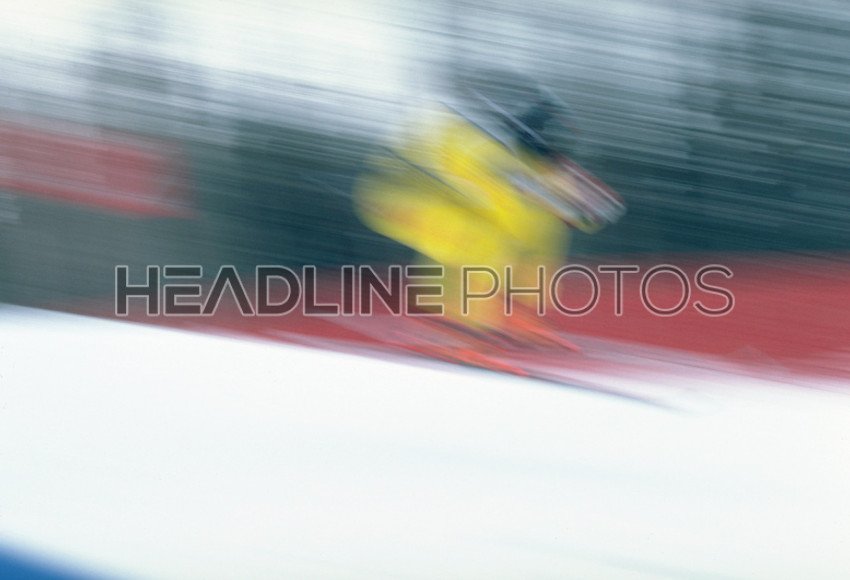 Female Ski Jumper Practicing Telemark Landing