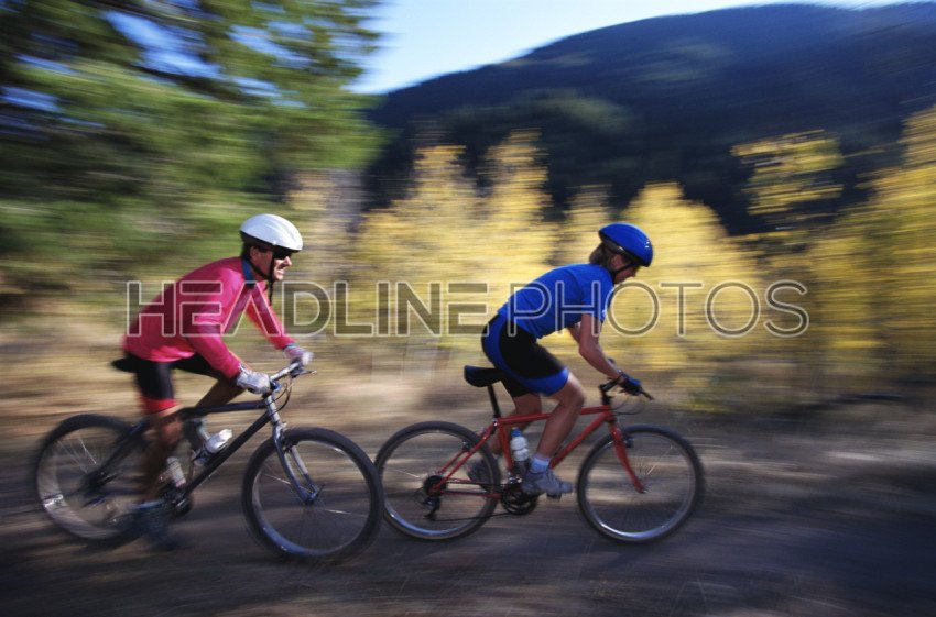Bikers Riding On A Mountain Trail