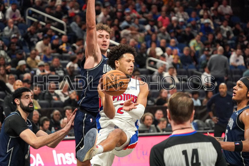 Orlando, Florida, USA, December 8, Detroit Pistons guard Cade Cunningham #2 makes a pass during the second half at the Amway Center. (Photo Credit: Marty Jean-Louis)