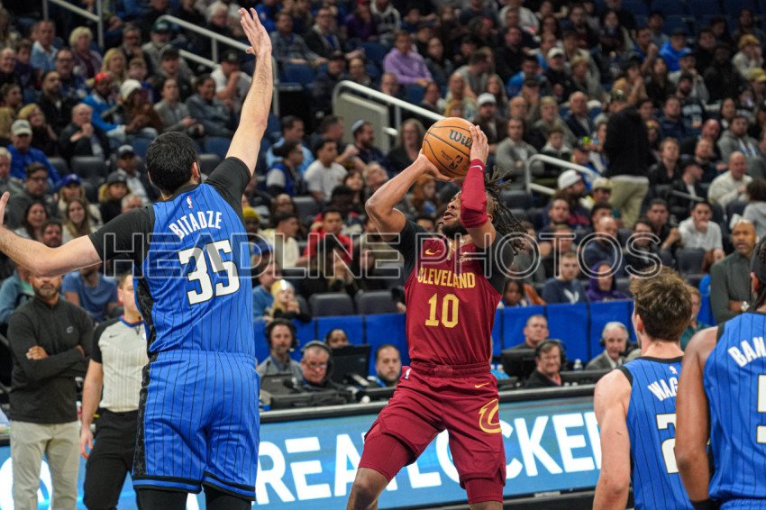 Orlando, Florida, USA, December 11, 2023, Cleveland Cavaliers guard Darius Garland #10 attempt to make a three in the first half at the Amway Center. (Photo Credit: Marty Jean-Louis)