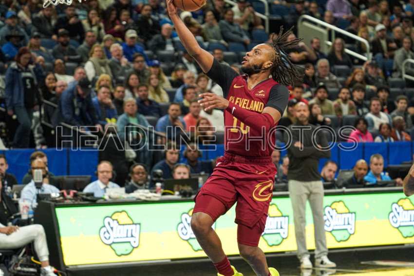 Orlando, Florida, USA, December 11, 2023, Cleveland Cavaliers guard Darius Garland #10 attempt to make a layup in the first half at the Amway Center. (Photo Credit: Marty Jean-Louis)