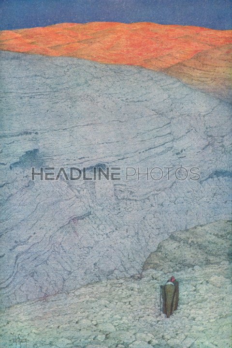 Plate 14, “The Wilderness of Judea,” by Jules Guerin, 1920, J. H. Jansen, Cleveland, Publisher.