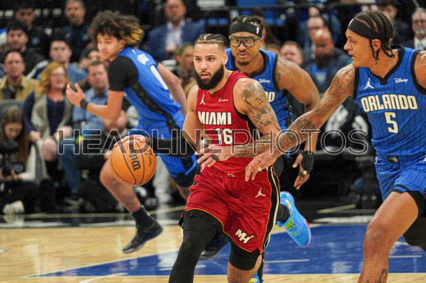 Orlando, Florida, USA, December 20, 2023, Miami Heat fguard Caleb Martin #16 runs pass Paolo Banchero #5 at the Amway Center. (Photo Credit: Marty Jean-Louis)