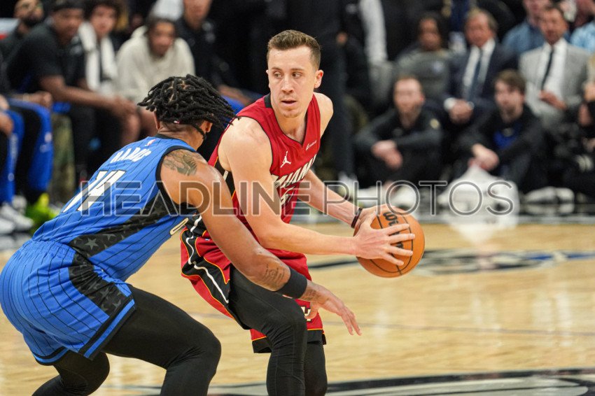 Orlando, Florida, USA, December 20, 2023, Miami Heat guard Duncan Robinson #55 attempt to run pass Gary Harris #14 at the Amway Center. (Photo Credit: Marty Jean-Louis)