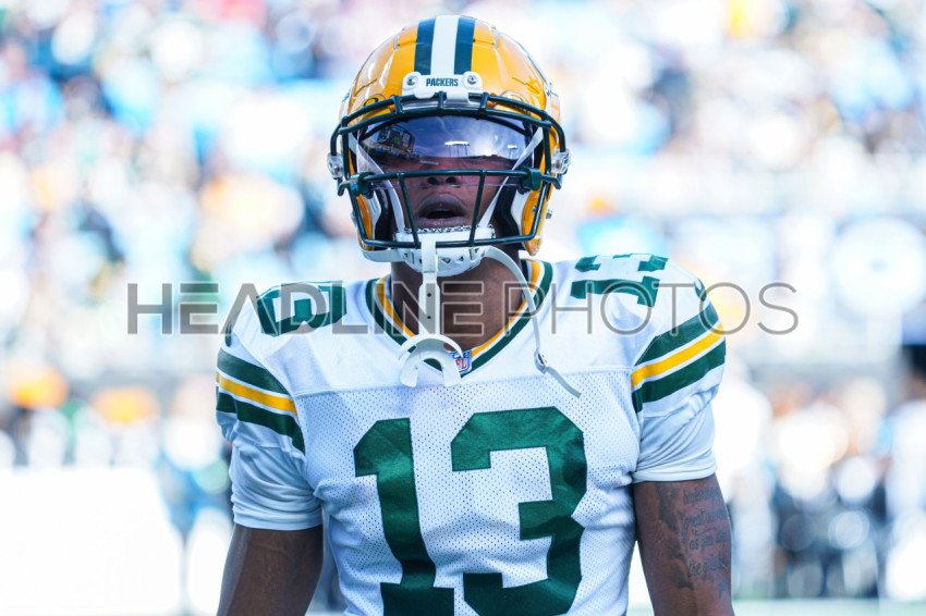 Charlotte, North Carolina, USA, December 24, 2023, Green Bay Packers player Dontayvion Wicks #13 at Bank of America Stadium. (Photo Credit: Marty Jean-Louis)