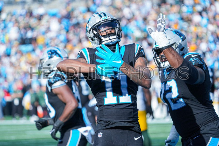 Charlotte, North Carolina, USA, December 24, 2023, Carolina Panthers wide receiver Ihmir Smith-Marsette #11 celebrate after making a touchdown after a catch at Bank of America Stadium. (Photo Credit: Marty Jean-Louis)
