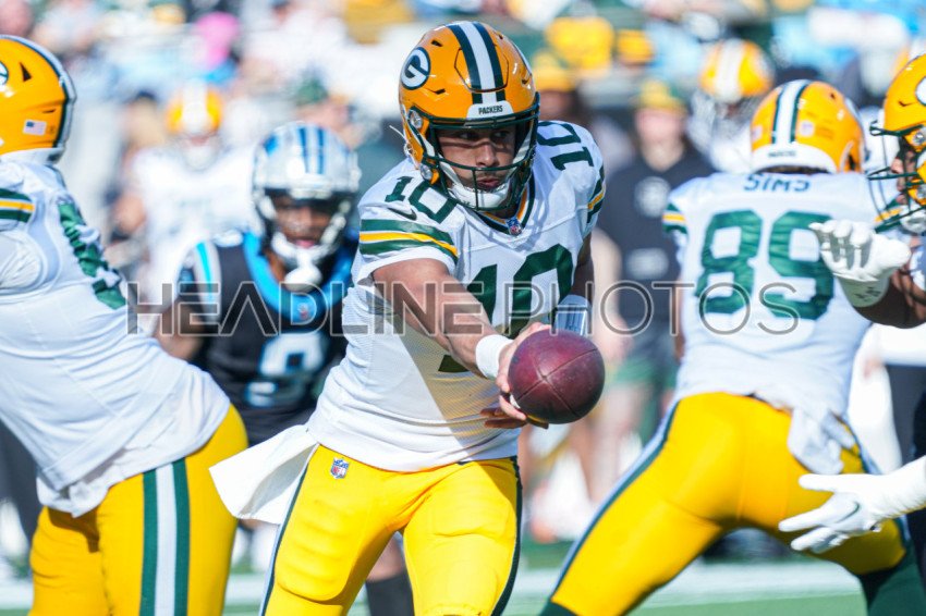 Charlotte, North Carolina, USA, December 24, 2023, Green Bay Packers quarterback Jordan Love #10 makes a pass at Bank of America Stadium. (Photo Credit: Marty Jean-Louis)