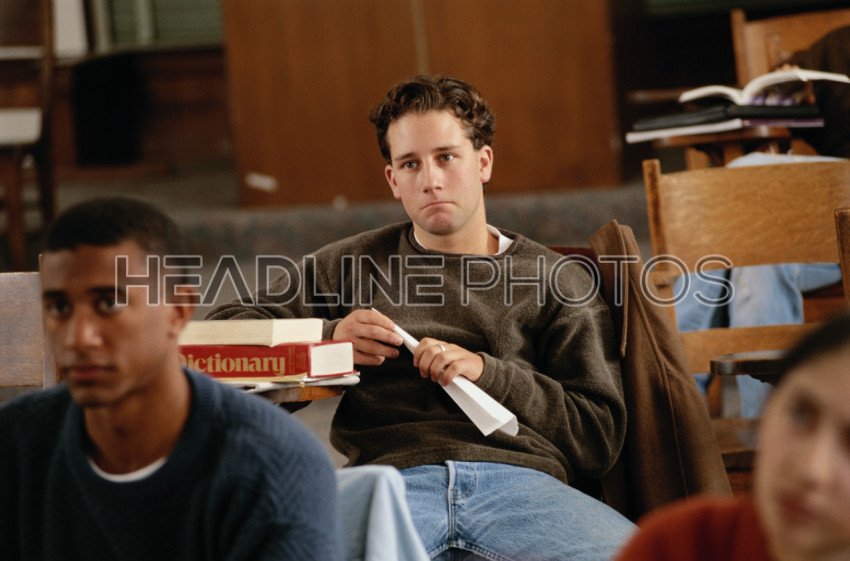 Young man during class in the university
