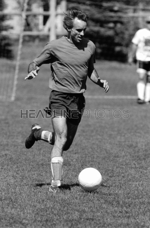 Soccer player dribbles a bal