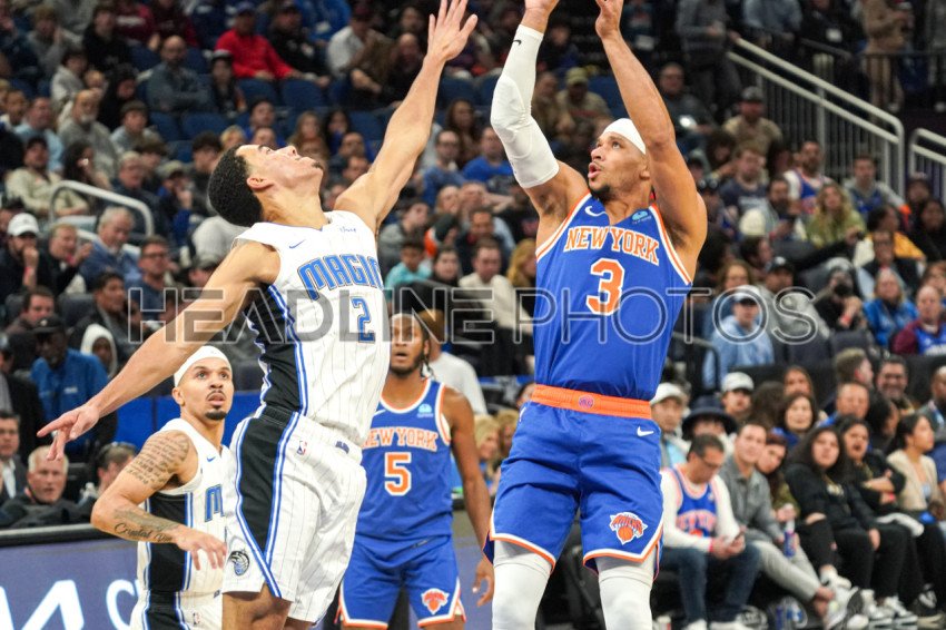 Orlando, Florida, USA, December 29, 2023, New York Knicks guard Josh Hart #3 shoots a three as Caleb Houstan #2 attempt to block at the Amway Center. (Photo Credit: Marty Jean-Louis)